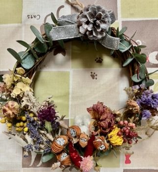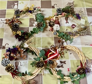 楽しくおしゃべりしながら、可愛らしいリースが完成しました。