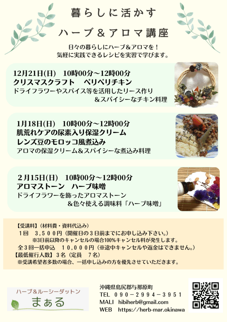 そんなあなたにオススメの「暮らしに活かすハーブ&アロマ講座」。